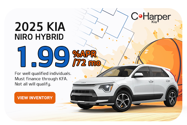 25 Niro Hybrid-1.9% APR for 72months --Based on stock# K14483 VIN KNDCR3LE2S5305579. Available on 2025 Kia Niro Hybrid for well qualified individuals. Must finance through KFA. Not all will qualify. No downpayment required. Not combinable with other offers. Cost per $1,000 financed is $14.71per month for 72months. Vehicle shown for illustrative purposes only. Multiple available. See dealer for details. Sale ends 03/31/2026