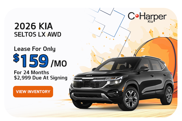 26 KIA SELTOS LX AWD – Lease $159/month, 24 months, 10K miles per year through KFA. $2999 down. Plus tax, dealer fees, state fees, and first payment. $0 Security deposit. Must qualify. Residency restrictions apply. See dealer for details. Multiple Available. While supplies last. Vehicle shown for illustrative purposes only. Sale ends 3/31/26