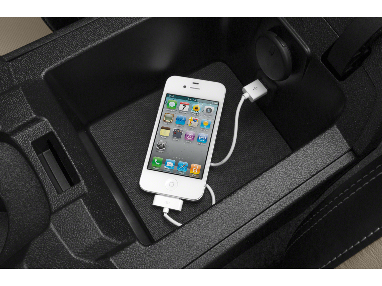 - Audio system feature, USB port, located in center console