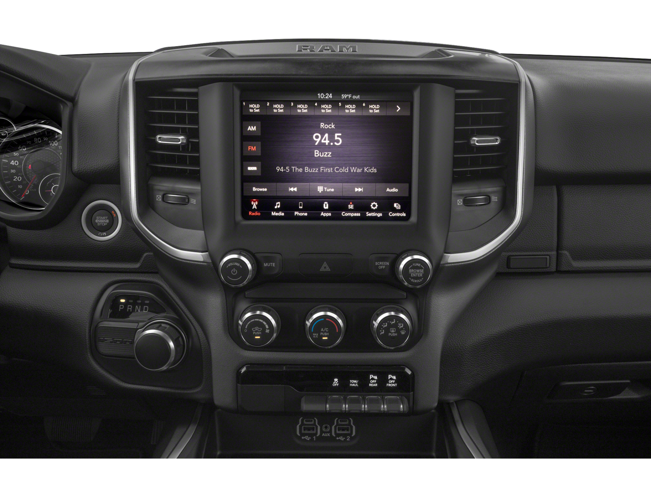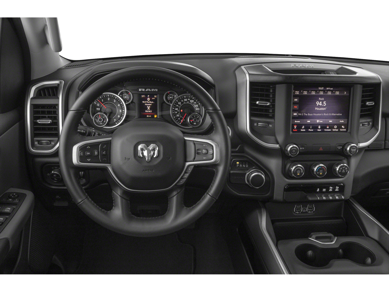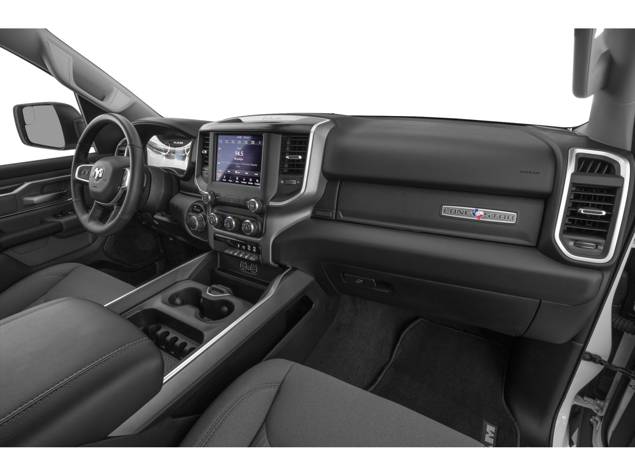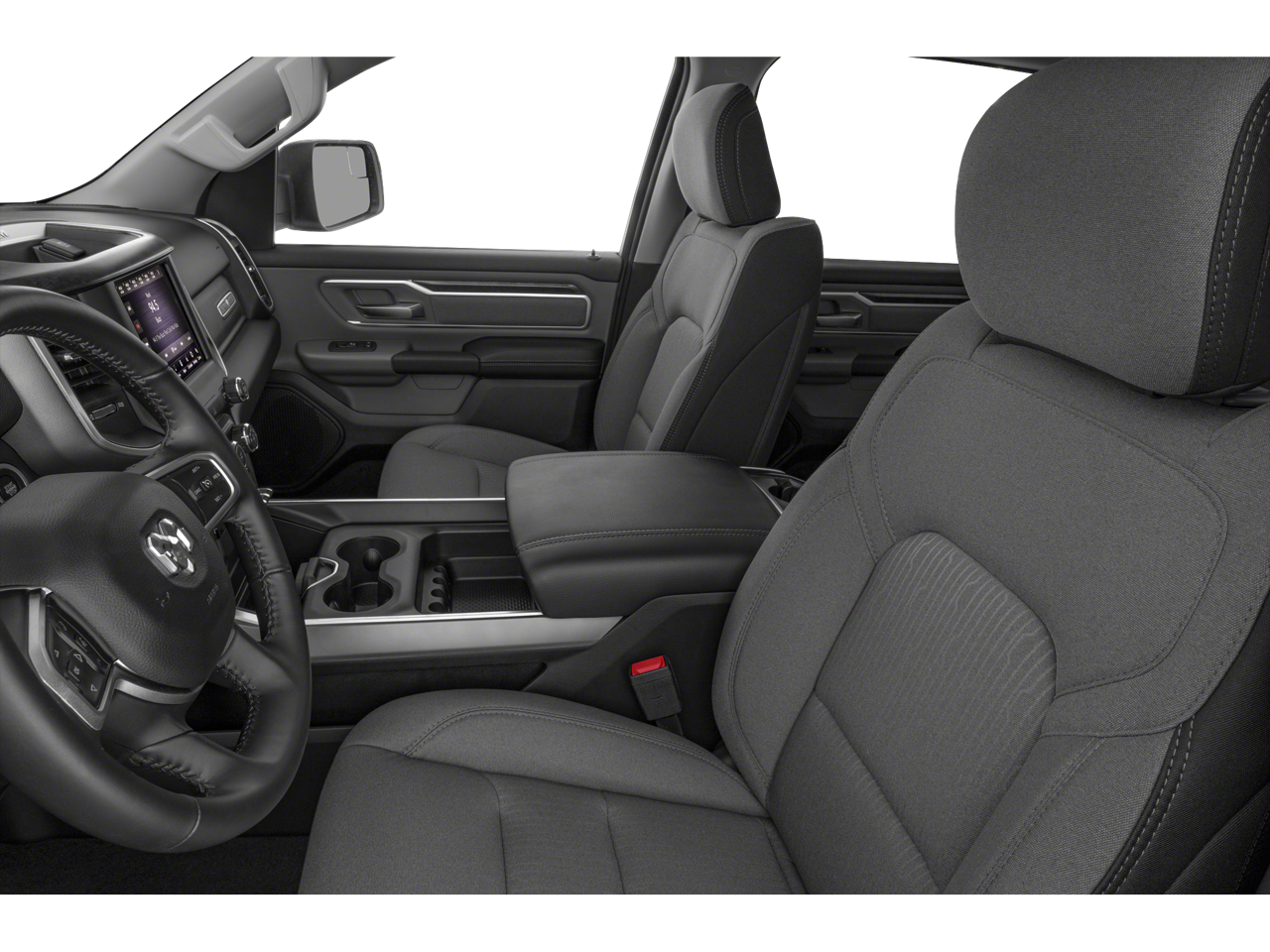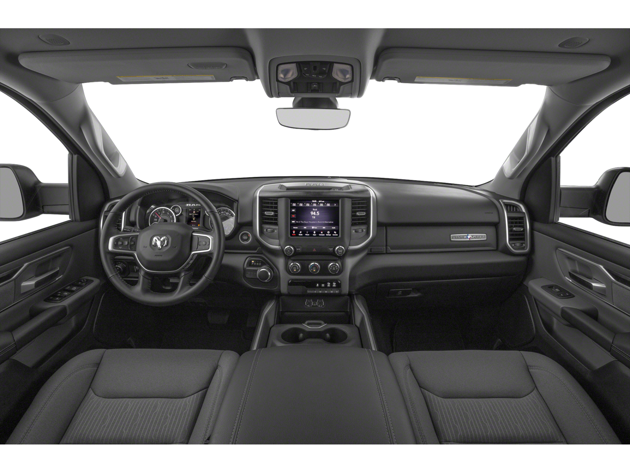 3 Rear Seat Head Restraints, 4 Way Front Headrests, 4-Wheel Disc Brakes, 48V Belt Starter Generator, 6 Speakers, ABS brakes, Air Conditioning, Alloy wheels, AM/FM radio, Anti-Spin Differential Rear Axle, Big Horn Level 2 Equipment Group, Brake assist, Bumpers: chrome, Cloth Bench Seat, Compass, Delay-off headlights, Deluxe Cloth Bucket Seats, Driver door bin, Dual front impact airbags, Dual front side impact airbags, Electronic Stability Control, Front & Rear Rubber Floor Mats, Front anti-roll bar, Front Center Armrest w/Storage, Front fog lights, Front reading lights, Front Seat Back Map Pockets, Front wheel independent suspension, Fully automatic headlights, GPS Antenna Input, Heated door mirrors, Illuminated entry, Leather steering wheel, Low tire pressure warning, Occupant sensing airbag, Outside temperature display, Overhead airbag, Overhead console, Panic alarm, ParkSense Front/Rear Park Assist w/Stop, ParkView Rear Back-Up Camera, Passenger door bin, Passenger vanity mirror, Power door mirrors, Power steering, Power windows, Quick Order Package 25Z Big Horn/Lone Star, Radio data system, Radio: Uconnect 3 w/5 Display, Radio: Uconnect 4 w/8.4 Display, Rear 60/40 Folding Seat, Rear anti-roll bar, Rear seat center armrest, Rear step bumper, Rear Wheelhouse Liners, Remote keyless entry, Remote Start System, Single Disc Remote CD Player, Speed control, Split folding rear seat, Sport Appearance Package, Tachometer, Telescoping steering wheel, Tilt steering wheel, Traction control, Trailer Brake Control, Trip computer, Variably intermittent wipers, Voltmeter, Wheels: 18 x 8, Wheels: 20 x 9 Aluminum Chrome Clad.