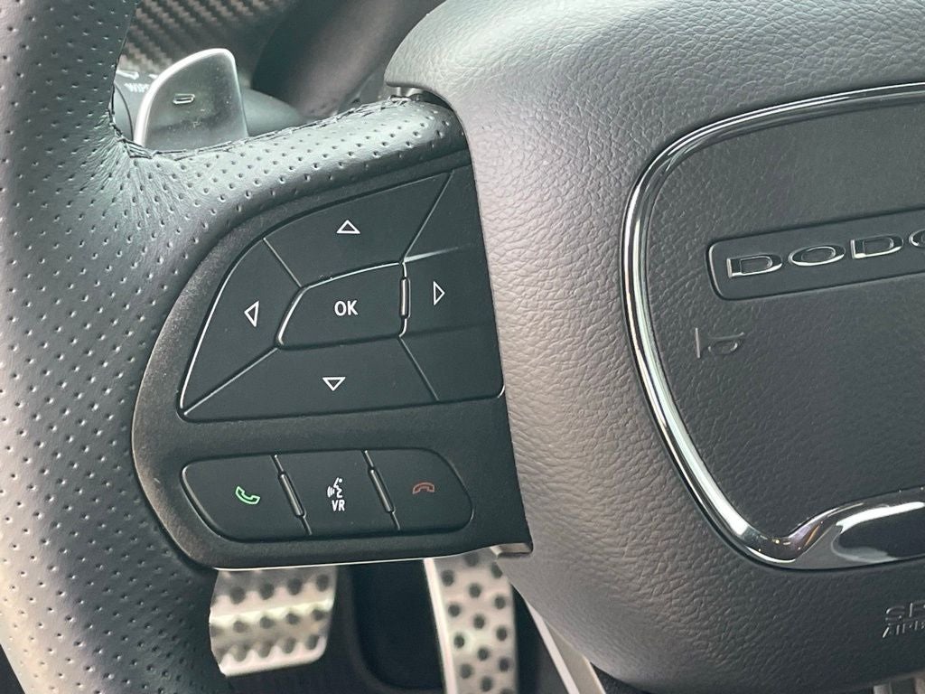 C. Harper Select Certified, 1-Yr SiriusXM Guardian Trial, 4-Wheel Disc Brakes, 4G LTE Wi-Fi Hot Spot, 506 Watt Amplifier, 6 Speakers, 8.4 Touchscreen Display, 9 Amplified Speakers w/Subwoofer, ABS brakes, Adaptive Damping Suspension, Air Conditioning, Alloy wheels, Alpine Audio Group w/Subwoofer, AM/FM radio: SiriusXM, Anti-whiplash front head restraints, Apple CarPlay, Apple CarPlay/Android Auto, Auto High Beam Headlamp Control, Auto-dimming Rear-View mirror, Automatic temperature control, Bee Fender Badge, Black-Edged Premium Floormats, Body Color Exterior Mirrors, Brake assist, Brembo 6-Pot Fixed Front Caliper Brakes, Bumpers: body-color, Carbon/Suede Interior Package, Compass, Compass Gauge, Dash Plaque, Delay-off headlights, Driver door bin, Driver vanity mirror, Dual front impact airbags, Dual front side impact airbags, Dynamics Package (DISC), Electronic Stability Control, Emergency communication system: SiriusXM Guardian, Exterior Mirrors w/Heating Element, Flat-Bottom Steering Wheel, For Details, Visit DriveUconnect.com, For More Info, Call 800-643-2112, Four wheel independent suspension, Front anti-roll bar, Front Bucket Seats, Front Center Armrest, Front dual zone A/C, Front fog lights, Front reading lights, Fully automatic headlights, Garage door transmitter, Gloss Black I/P Cluster Trim Rings, Google Android Auto, GPS Antenna Input, HD Radio, Heated door mirrors, Heated Front Seats, Heated Steering Wheel, High-Intensity Discharge Headlamps, Houndstooth Cloth Performance Seats, Illuminated entry, Integrated Center Stack Radio, Integrated Voice Command w/Bluetooth®, Leather Shift Knob, Low tire pressure warning, Manuf Statement of Origin, Media Hub (2 USB, AUX), MOPAR Black Hood Pin Kit, Mopar Bright Door Sills, Mopar Interior Appearance Group, MOPAR Premium Floor Mats w/Logo, MOPAR Shaker Hood, MOPAR Shaker Intake, Outside temperature display, Overhead airbag, Overhead console, Panic alarm, ParkView Rear Back-Up Camera, Passenger door bin, Passenger vanity mirror, Plus Package, Power door mirrors, Power driver seat, Power Multi-Function Foldaway Mirrors, Power steering, Power Tilt/Telescope Steering Column, Power windows, Premium-Stitched Dash Panel, Quick Order Package 24G R/T Scat Pack, Radio data system, Radio: Uconnect 4C w/8.4 Display, Radio/Driver Seat/Mirrors Memory, Rain Sensitive Windshield Wipers, Real Carbon Fiber Interior Accents, Rear anti-roll bar, Rear reading lights, Rear seat center armrest, Rear window defroster, Red Brake Calipers, Remote keyless entry, Rhombi 2-Pc Wheel Center Cap, Scat Pack Logo Nappa/Alcantara Seat, Scat Pack Stripe, Security system, Shaker Mounted 392 HEMI Badge, Shaker Package (DISC), Shark Fin Antenna, SiriusXM Radio Service, SiriusXM Satellite Radio, Speed control, Speed-sensing steering, Split folding rear seat, Spoiler, Sport steering wheel, Steering wheel mounted audio controls, Suede Headliner, Surround Sound, Tachometer, Technology Group (DISC), Telescoping steering wheel, Tilt steering wheel, Traction control, Trip computer, Trunk Mat w/Logo, Underhood Shaker Decal, USB Host Flip, Variably intermittent wipers, Ventilated Front Seats, Wheels: 20 x 9.0 Lo Gloss Granite Crystal, Wheels: 20 x 9.5 Low Gloss Black Drag, White Face Instrument Cluster.