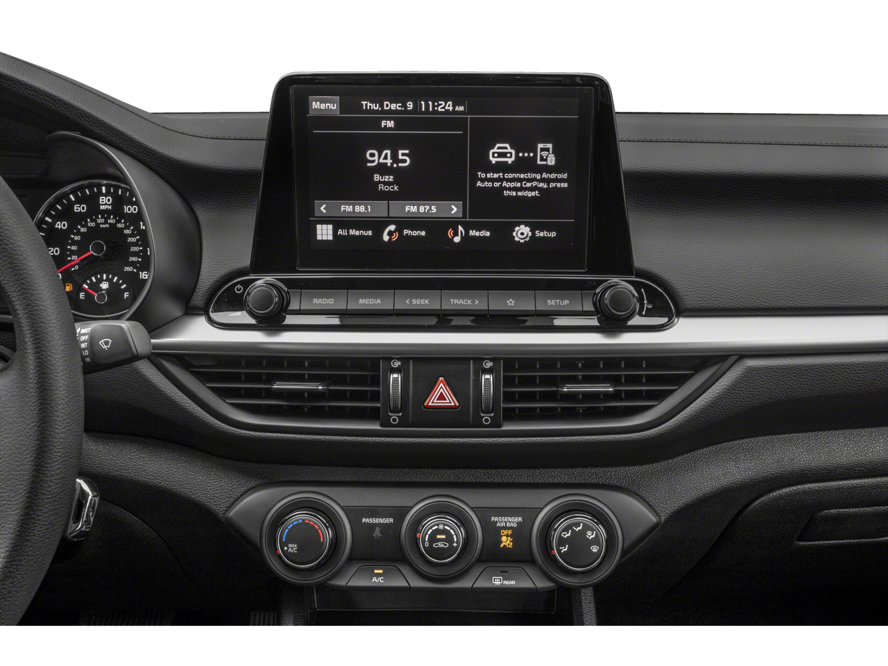 Kia Certified Pre-Owned Certified, 16 x 6.5J Alloy Wheels, 4 Speakers, 4-Wheel Disc Brakes, ABS brakes, Air Conditioning, Alloy wheels, AM/FM radio, Apple CarPlay & Android Auto, Auto High-beam Headlights, Brake assist, Bumpers: body-color, Carpet Floor Mats, Cloth Seat Trim, Delay-off headlights, Driver door bin, Driver vanity mirror, Dual front impact airbags, Dual front side impact airbags, Electronic Stability Control, Exterior Parking Camera Rear, Front anti-roll bar, Front Bucket Seats, Front Center Armrest, Front reading lights, Front wheel independent suspension, Fully automatic headlights, Illuminated entry, Low tire pressure warning, Mudguards, Occupant sensing airbag, Outside temperature display, Overhead airbag, Overhead console, Panic alarm, Passenger door bin, Passenger vanity mirror, Power door mirrors, Power steering, Power windows, Radio data system, Radio: 8 Display Audio, Rear window defroster, Remote keyless entry, Security system, Speed control, Split folding rear seat, Steering wheel mounted audio controls, Tachometer, Telescoping steering wheel, Tilt steering wheel, Traction control, Trip computer, Variably intermittent wipers.