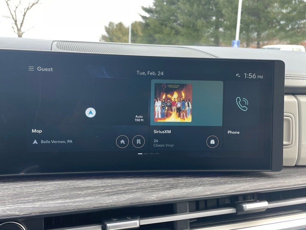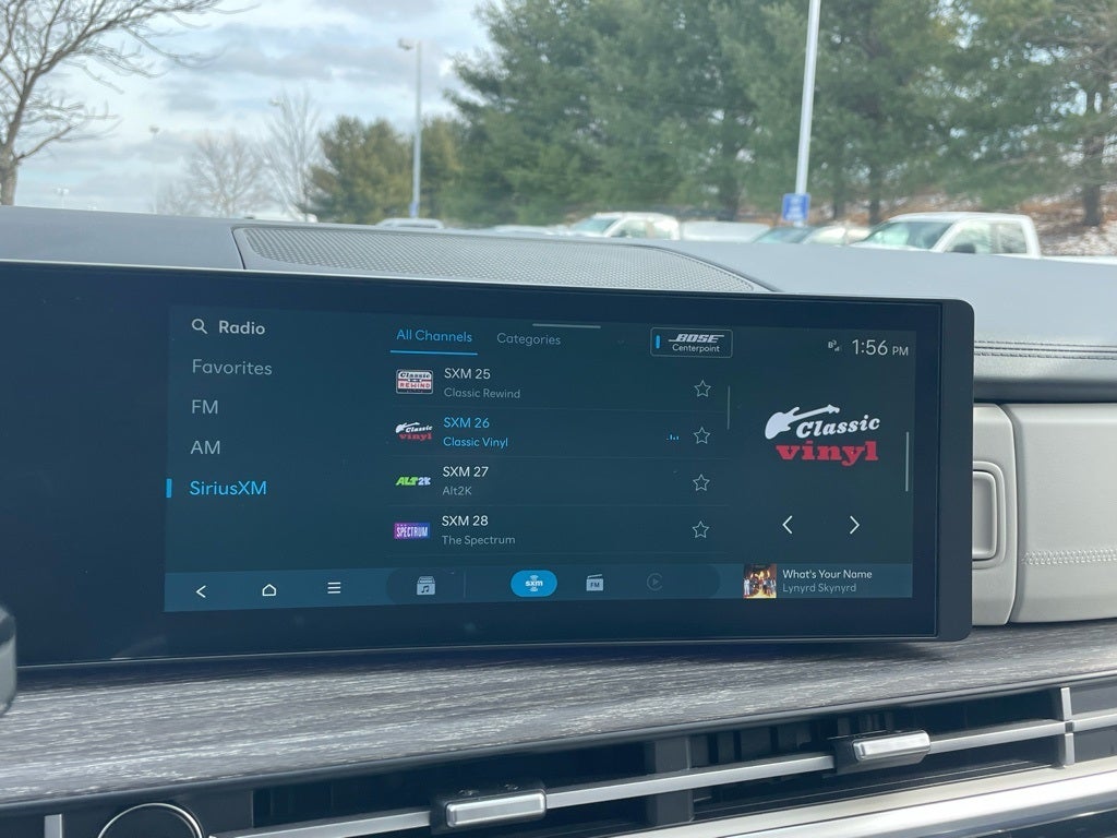 - Radio: AM/FM/HD Bose Premium Audio System -inc: 12 speakers including subwoofer, external amplifier, 12.3" wide touchscreen, Apple CarPlay and Android Auto, Bluetooth® hands-free w/wireless audio streaming, dynamic voice recognition, USB connectivity, SiriusXM, Blue Link connected car system, over-the-air updating capability, navigation system including traffic flow w/incident data via HD Radio (HERE) and rear seat quiet mode